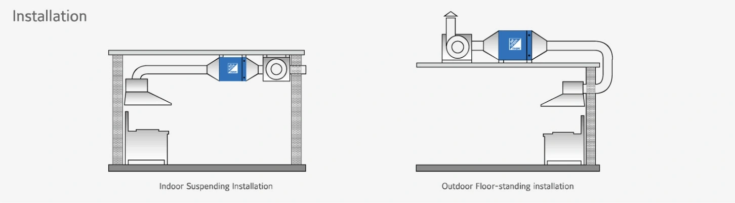TRION can flexibly provide a variety of system solutions based on customer's kitchen oil fume volume and emission requirements, and the required installation location. That will completely solve the cooking fume problem, meet emission standards, and create a clean and healthy living environment.