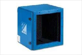 The TRION® T-Series utilizes the principle of Electrostatic Precipitation. Air is drawn by the motor/blower through a washable metal mesh pre-filter which traps large dust particles. The remaining particles, some as small as 0.01 microns, pass into a strong electrical field (ionizing section) where the particulate receives an electrical charge. The charged particles then pass into a collector plate section made up of a series of equally spaced parallel plates. Each alternate plate is charged with the same polarity as the particles, which repel, while the interleaving plates are grounded, which attract and collect.