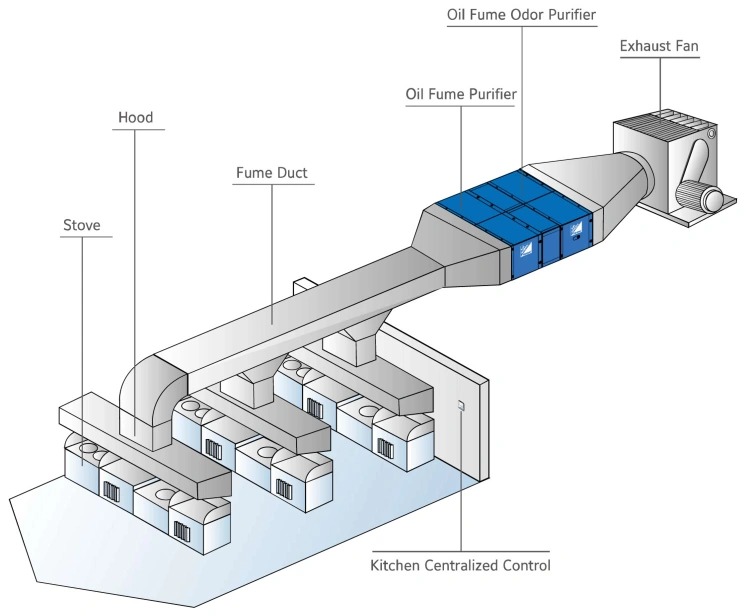 Kitchen purification systems involves two parts: oil fume purification, and oil fume odor treatment.